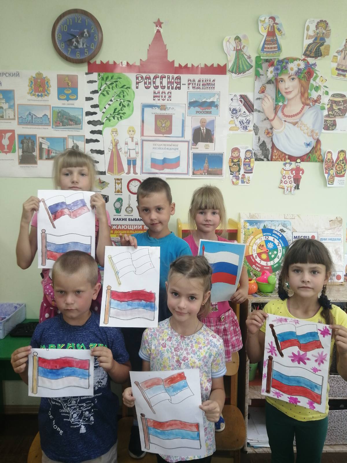 22 августа наша страна отмечает День рождения Российского флага. В нашем детском саду прошли мероприятия для детей, где дошкольники продолжали знакомиться с символическим значением флага России. Дети слушали гимн, стихи о Российском флаге. Завершилось тематическое занятие «Флаг-главный символ страны» рисованием флага.