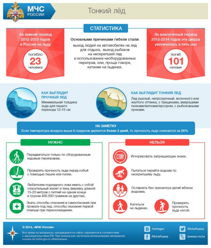 - помните об условиях образования и свойствах льда в различные периоды зимы, различать приметы опасного льда, знать меры предосторожности и постоянно их соблюдать;