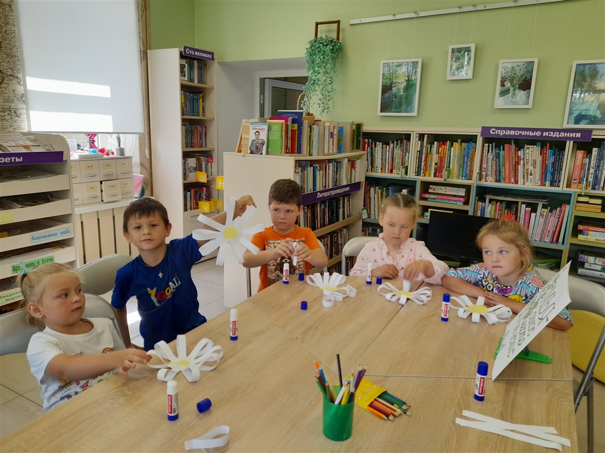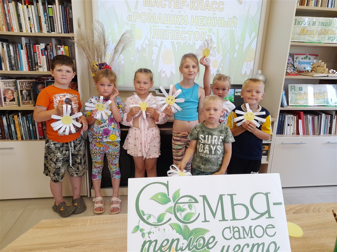 8 июля в «День семьи, любви и верности» совместно с Григорьевской библиотеке для воспитанников детского сада №20 с. Григорьево был проведен мастер – класс «Ромашки нежный лепесток».