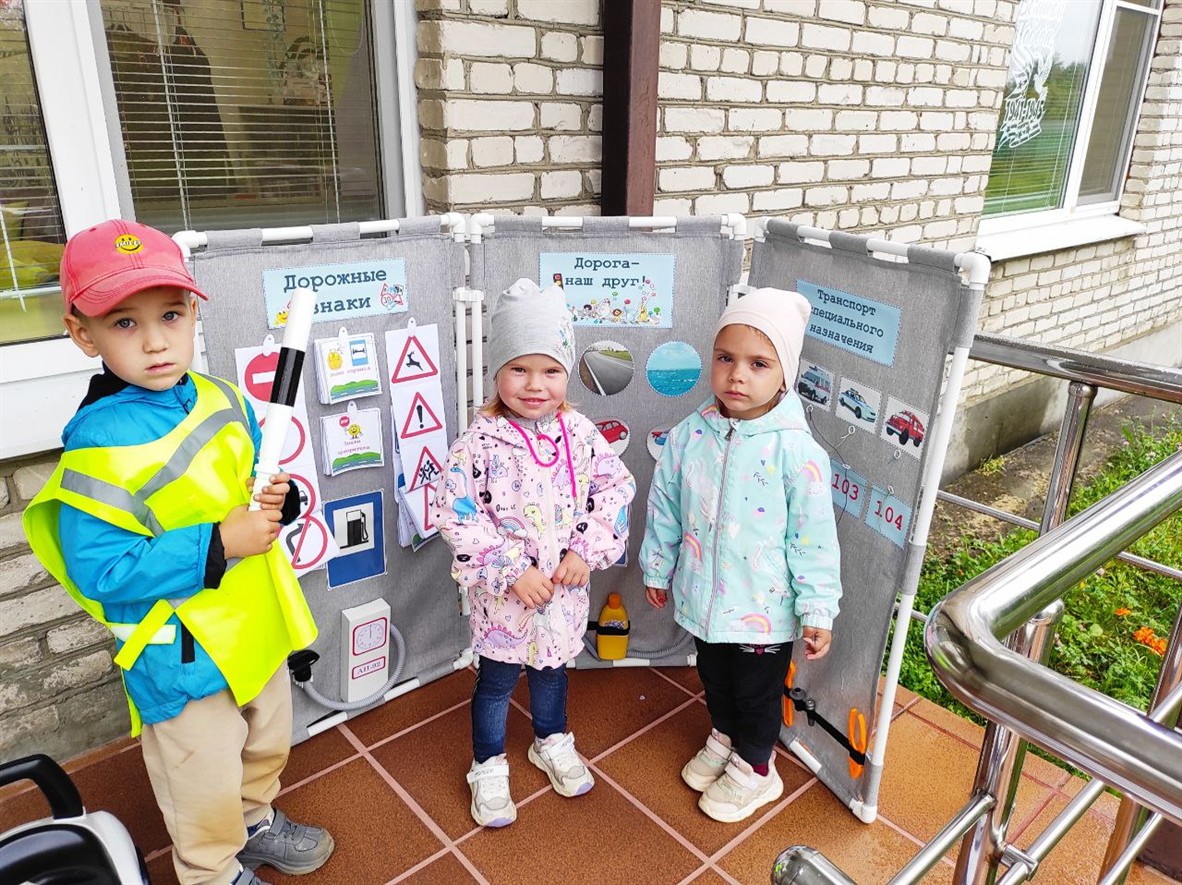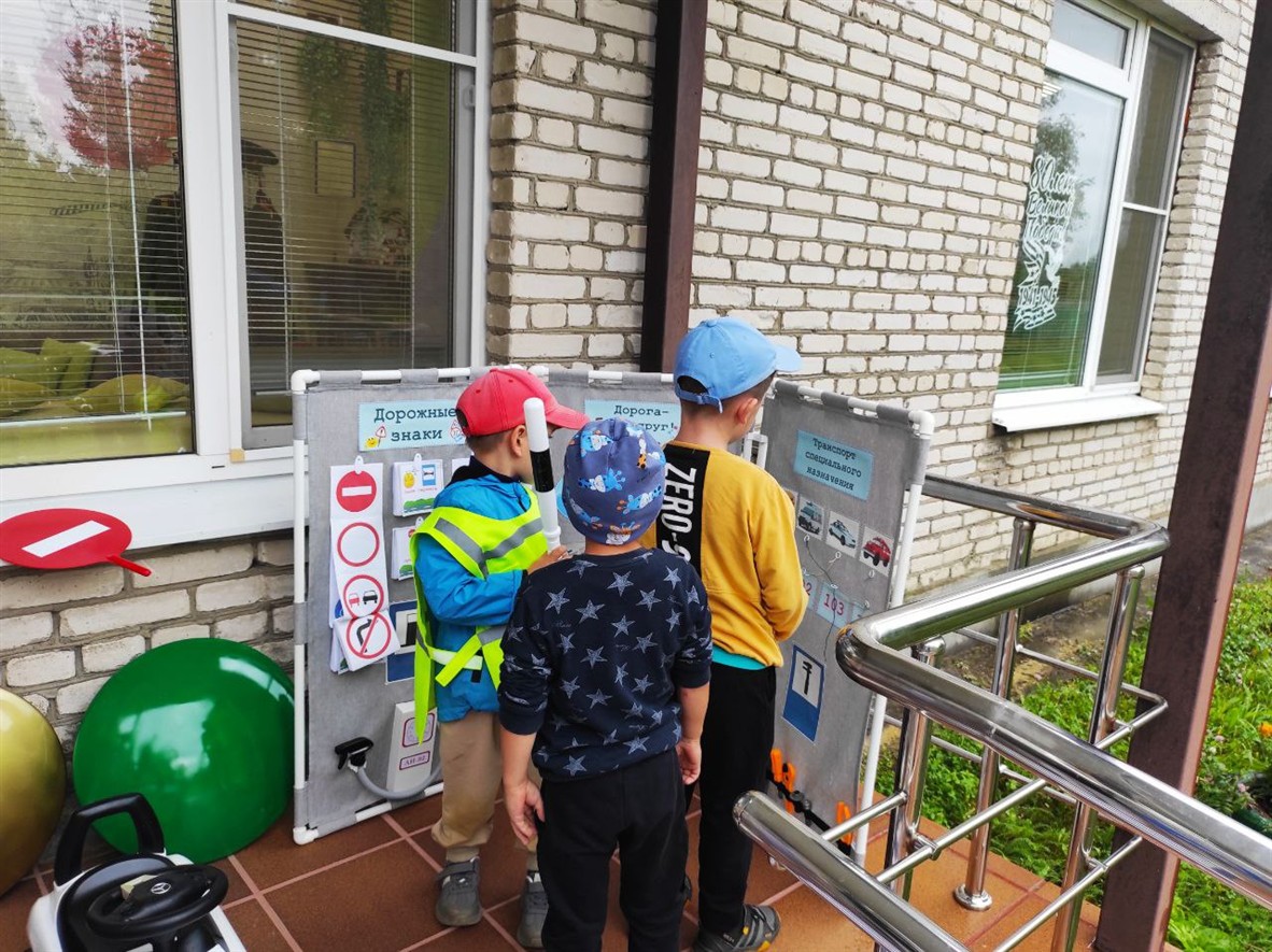 Затем с помощью материалов интерактивного стенда «Безопасность дорожного движения» и пособия «Светофор», выполненных педагогом-психологом детского сада Мясничковой С. И., в игровой форме изучали и повторяли дорожные знаки, знакомились с транспортом специального назначения, учились содержать транспортное средство в исправном состоянии (проводить техническое обслуживание, заправлять бензином, поддерживать чистоту и порядок).