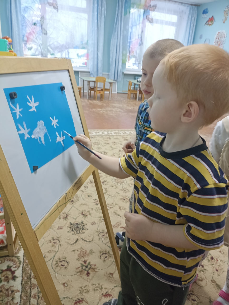 Новый год и Рождество являются самыми любимыми праздниками детворы. Еще в нашей стране отмечают Старый Новый год. В эти дни ребята познакомились с балетом Петра Ильича Чайковского «Щелкунчик». Музыка балета настолько выразительна, что дети погрузились в сказку с первых нот. Щелкунчик вместе с игрушечными солдатиками вступает в неравную схватку с грызунами Ажурные снежинки танцуют для них дивный танец. Дошкольники посмотрели отрывок из балета «Вальс снежных хлопьев». Этот танец произвел на них большое впечатление. Как красиво танцуют балерины! Ребята взялись за кисти, краски, цветные карандаши и постарались изобразить танцующих снежинок. Сколько получилось положительных эмоций!